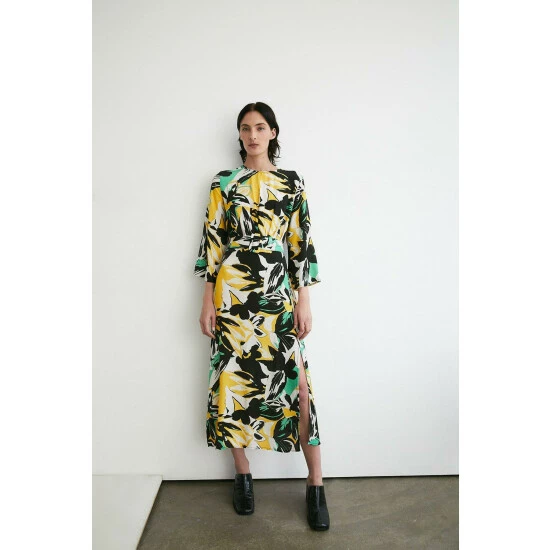 100% Viscose – Machine Wash. Model wears UK 10. Length in UK size 10: 130cm.