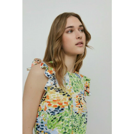 Warehouse Petite Abstract V Neck Pleated Maxi Dress For Female