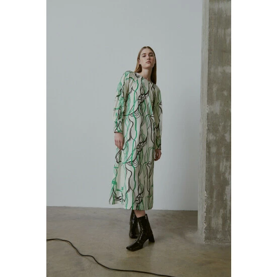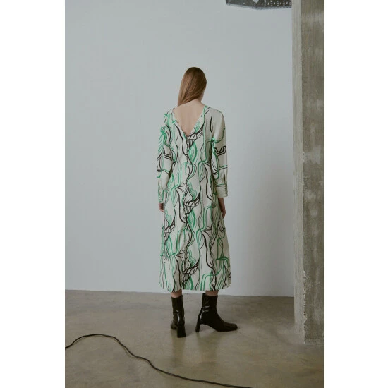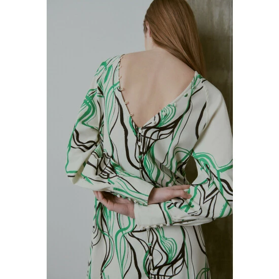 Abstract Swirl Print Satin Crepe Midaxi With Button Back