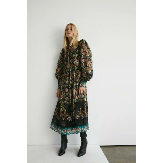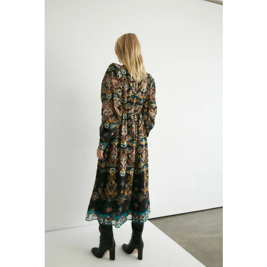 Warehouse Petite Abstract V Neck Pleated Maxi Dress For Female