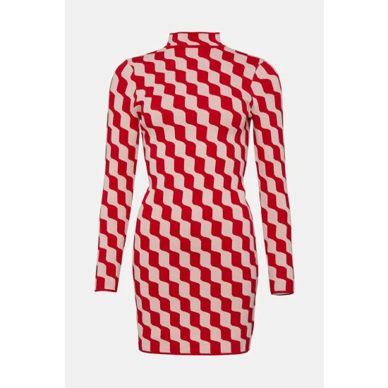 Check Jacquard Knit Short Dress