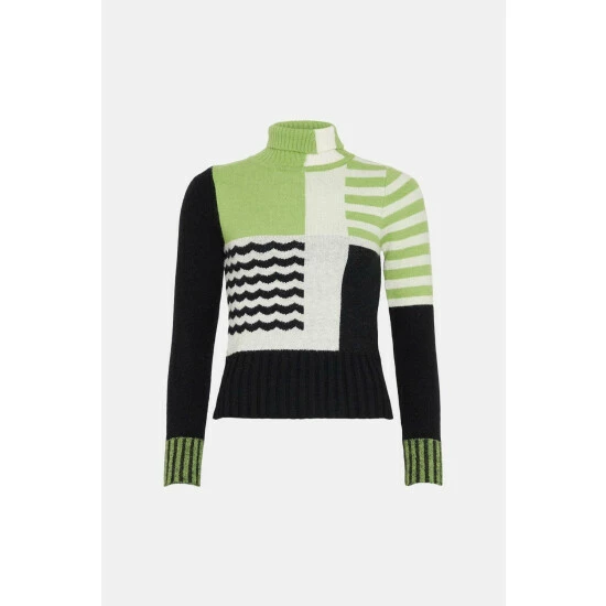 Layer up in a roll neck, long sleeve jacquard knit jumper. Designed in a striking colour block stripe print to elevate jeans and leather trousers. Crafted in a regular fit for an instant outfit update.