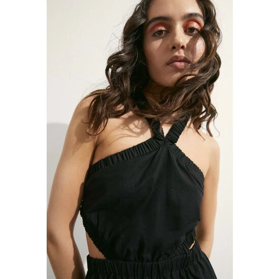 Body – 90% Cotton 10% Hemp. Lining – 100% Cotton – Machine wash. Model wears a UK size 10. Inside leg length of a UK size 10: 78cm.