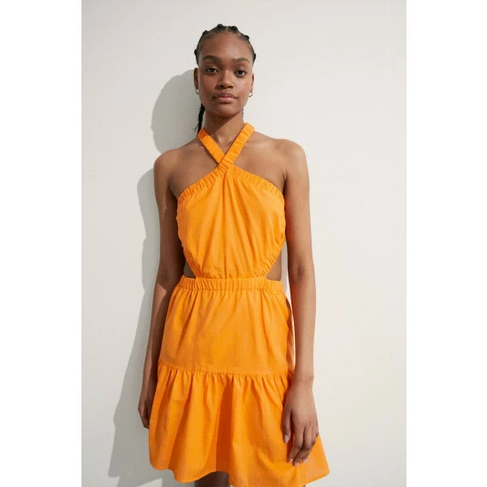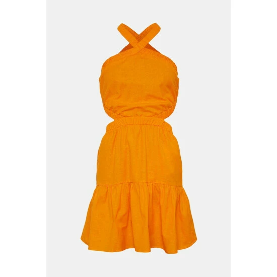 Main – 90% Cotton 10% Hemp. Lining – 100% Cotton – Machine wash. Model wears a UK size 10. Length of a UK size 10 from SNP: 90cm.