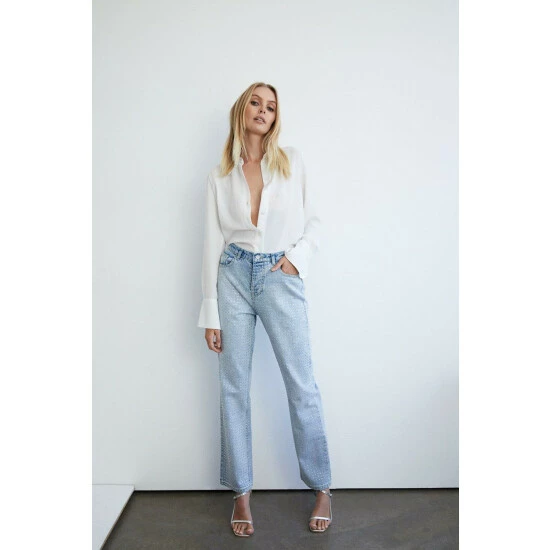 100% Cotton. Wash with similar colours. Model wears a UK size 10. Inside leg length: 78cm