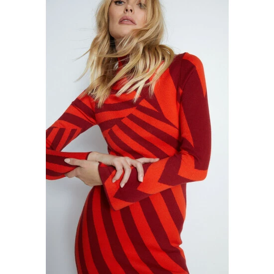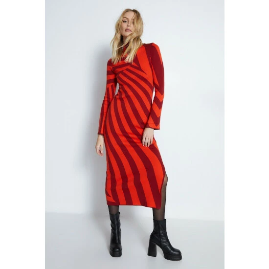 50% viscose 28% polyester 22% polyamide. Model wears size UK S, length from side neck point is 129cm.