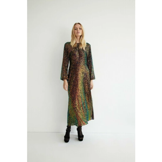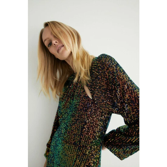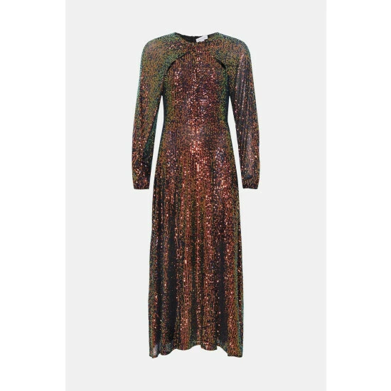 95% Polyester, 5% Elastane/Spandex- Dry Clean Only. Model Wear UK Size 10. Length from SNP 130CM.