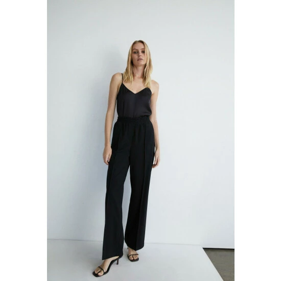 33% Recycled Polyester 29% Regular Polyester 34% Viscose 4% Elastane – Wash with similar colours. Model wears a UK size 10. Inside leg length: 80cm.
