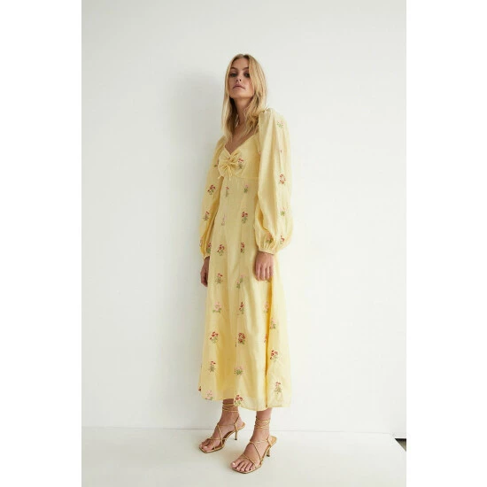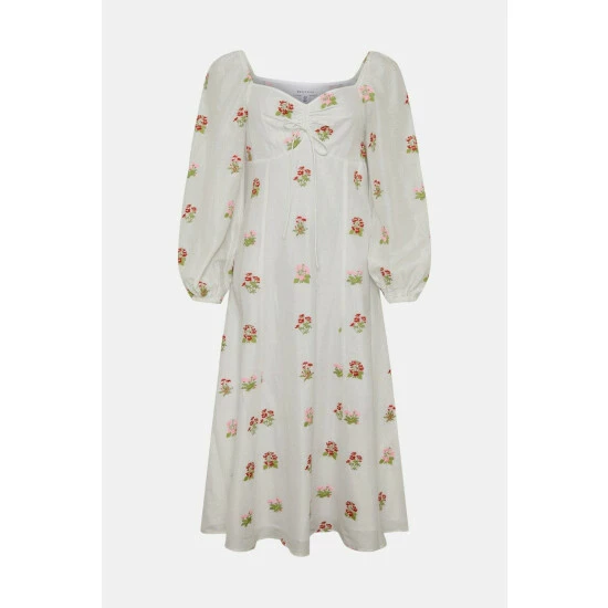 Warehouse Plus Size Embroidered Yoke Floral Midi Dress For Female