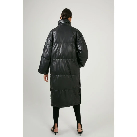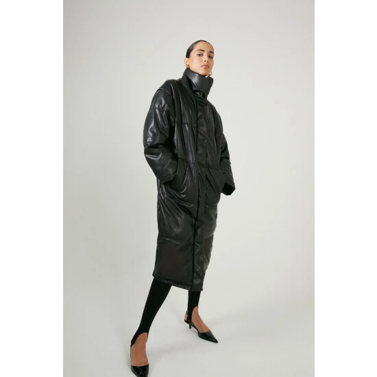 Shell: 100% Polyurethane. Backing: 100% Polyester. Filling: 100% Polyester. Lining: 100% Polyester. Model wears a UK size 10. CB length: 110cm.