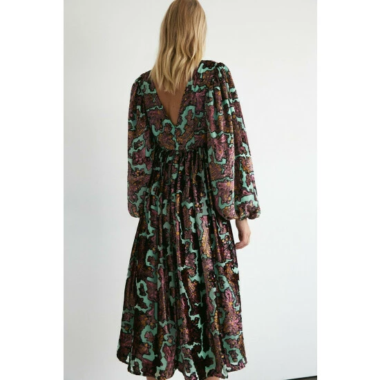 Warehouse Plus Size Embroidered Yoke Floral Midi Dress For Female