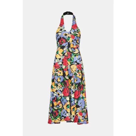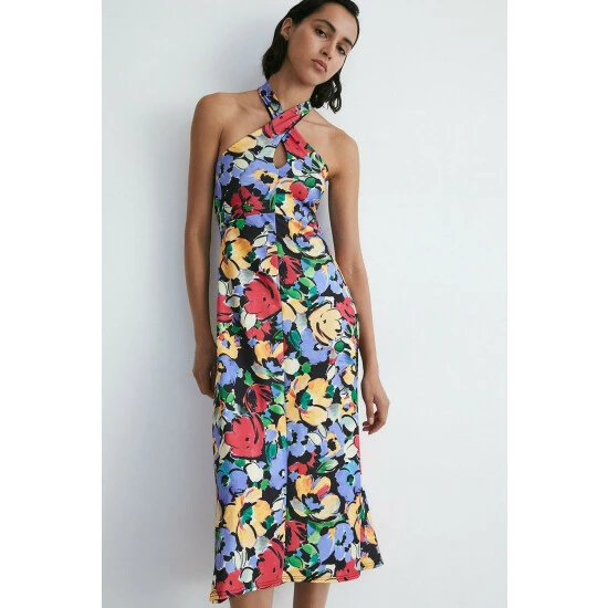 Warehouse Petite Abstract V Neck Pleated Maxi Dress For Female