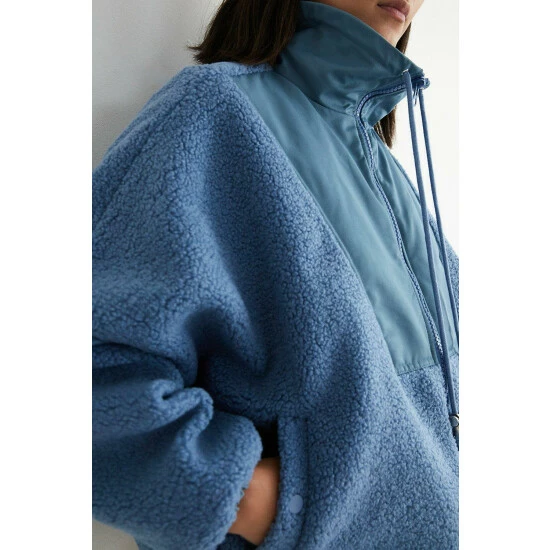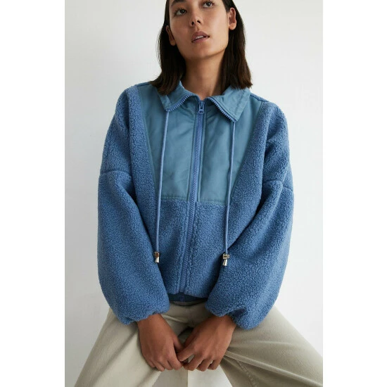Faux fur: 100% Polyester. Contrast: 80% Polyester 20% Cotton. Lining: 100% Polyester – Dry clean only. Model wears a UK size 10. CB length: 64cm.