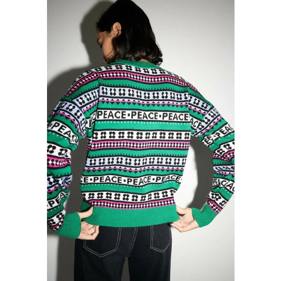50% viscose 28% polyester 22% polyamide. Model wears size UK S. Length from side neck point is 62cm.