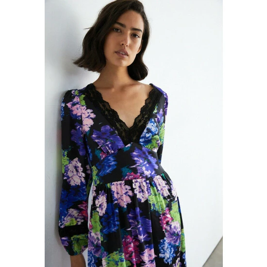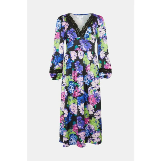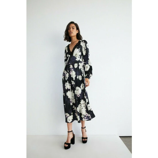 Warehouse Plus Size Embroidered Yoke Floral Midi Dress For Female