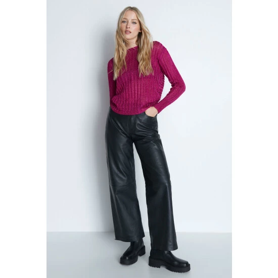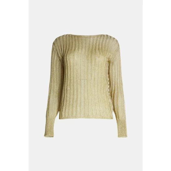 45% viscose 32% metallised fibre 23% polyester. Model wears UK size S. Length from side neck point is 59cm.