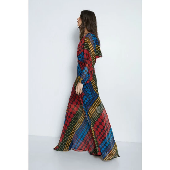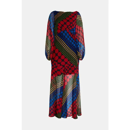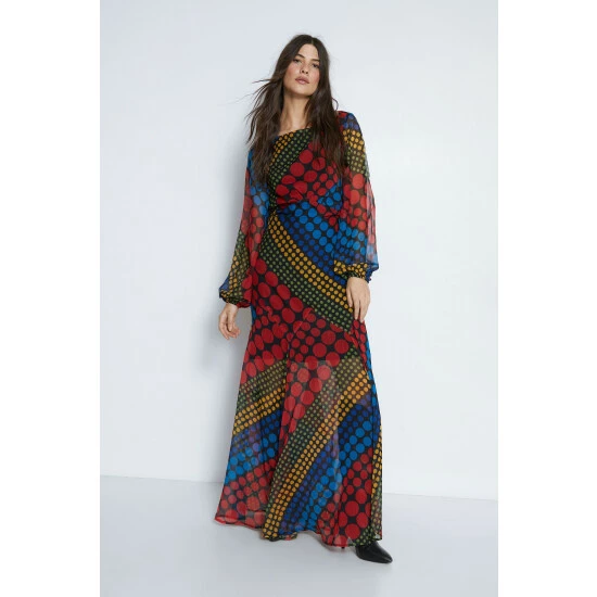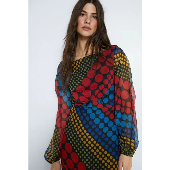 Style: Midi DressDesign: SpotsFabric: WovenLength: MidiNeckline: Round NeckSleeve Length: Long Sleeve