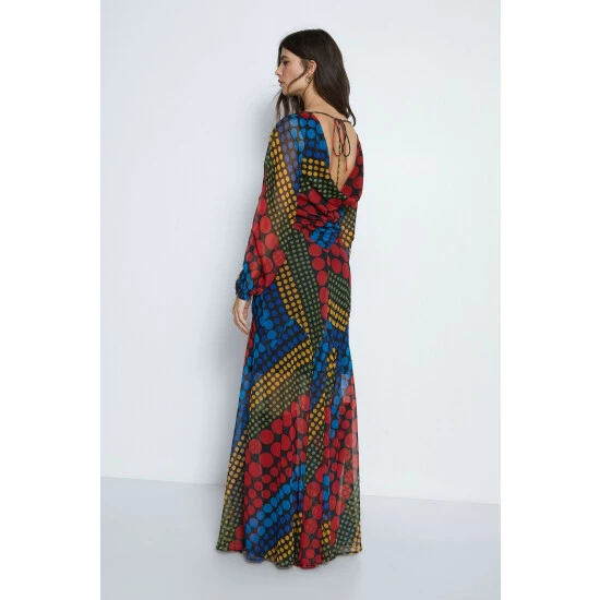 Warehouse Petite Abstract V Neck Pleated Maxi Dress For Female
