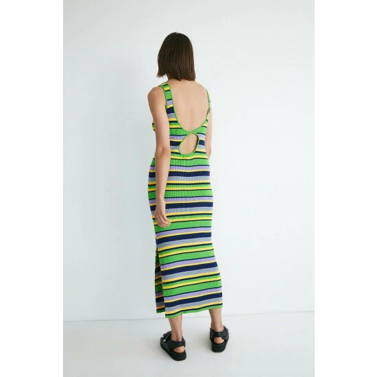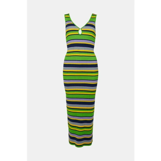 Warehouse Multi Stripe Ribbed Knit Midi Dress For Female