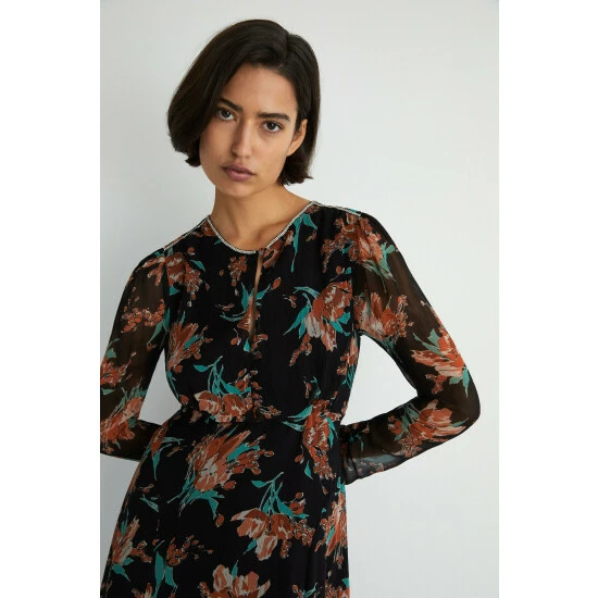 Main: 100% Viscose, Lining: 100% Polyester. Wash With Similar Colours. Model Wears a UK Size 10. Length from SNP: 119cm