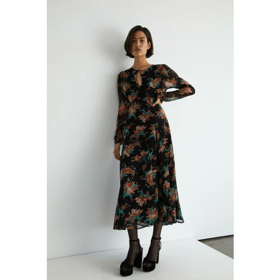 Warehouse Plus Size Embroidered Yoke Floral Midi Dress For Female