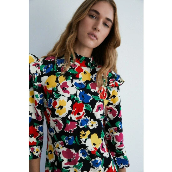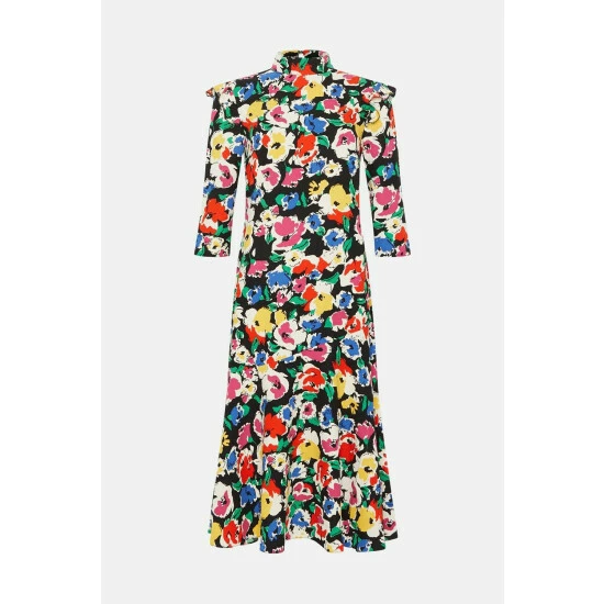 Warehouse Plus Size Embroidered Yoke Floral Midi Dress For Female
