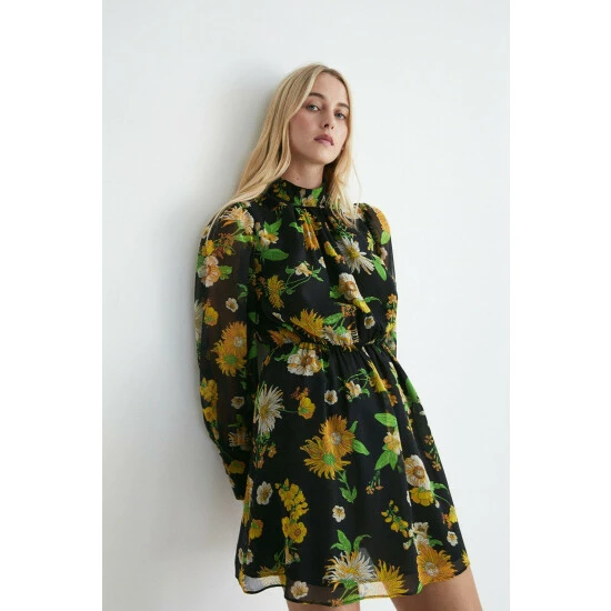 Warehouse Petite Abstract V Neck Pleated Maxi Dress For Female
