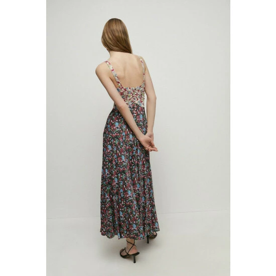 Warehouse Petite Abstract V Neck Pleated Maxi Dress For Female