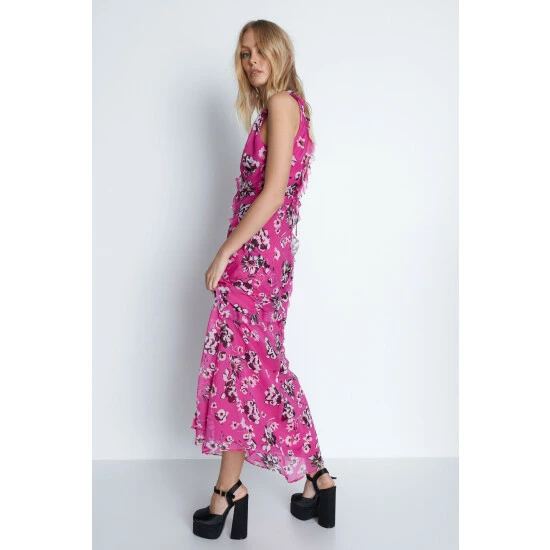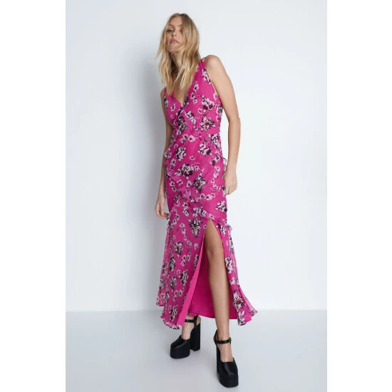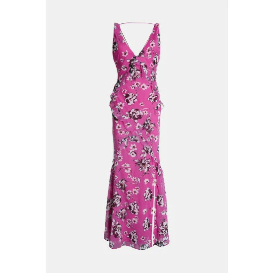 Style: Maxi DressDesign: FloralFabric: WovenLength: MaxiNeckline: V NeckSleeve Length: Sleeveless