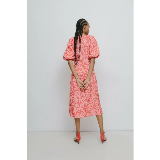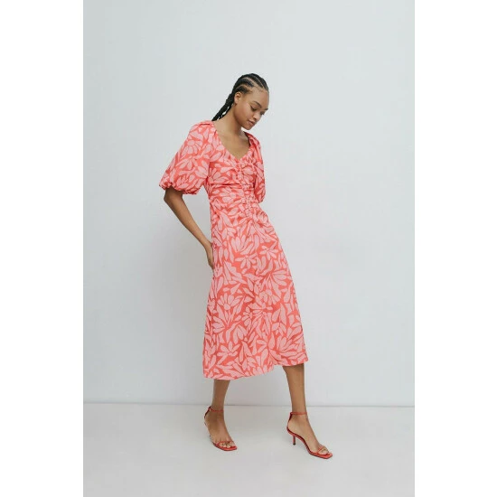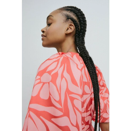 Warehouse Petite Abstract V Neck Pleated Maxi Dress For Female