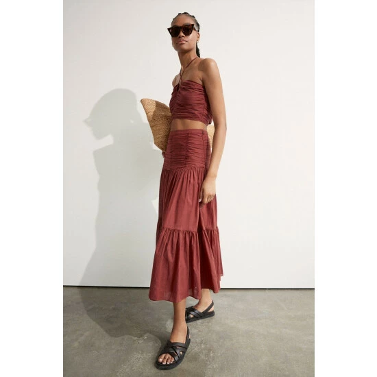 Main 53% Viscose 47% Cotton. Lining 100% cotton – Machine Wash. Model wears UK 10.