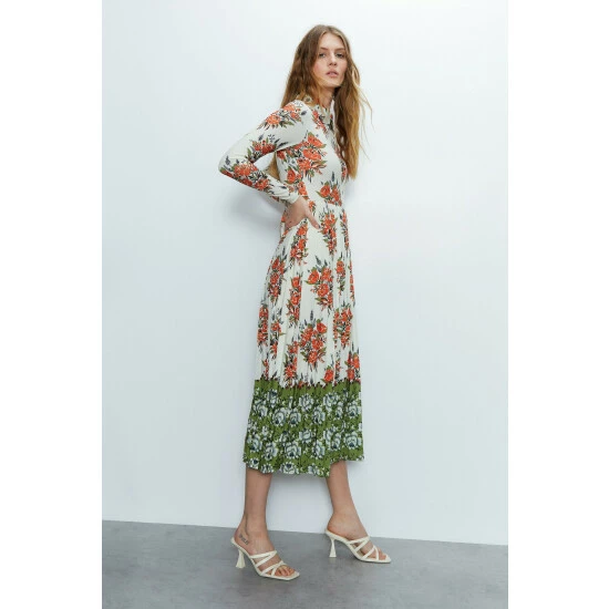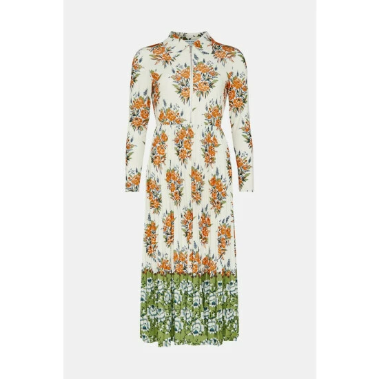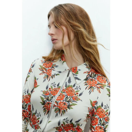 Style: Midi DressDesign: FloralFabric: Ity JerseyLength: MidiNeckline: Zip ThroughSleeve Length: Long Sleeve