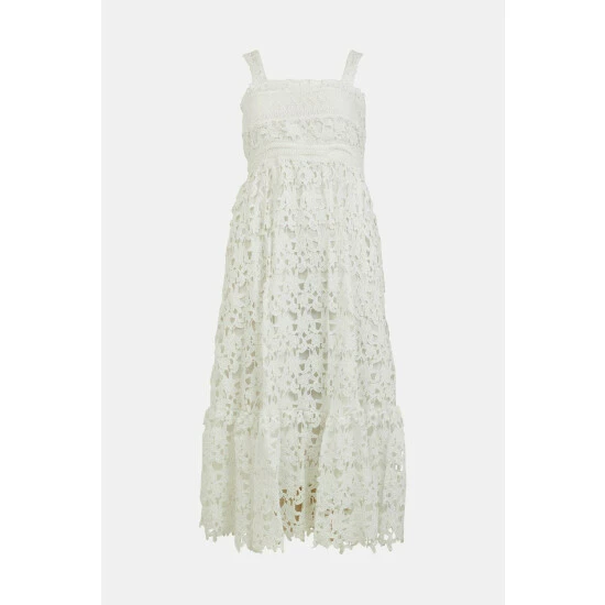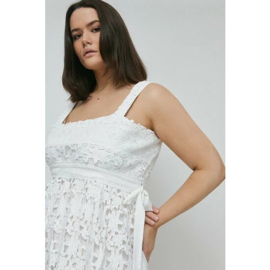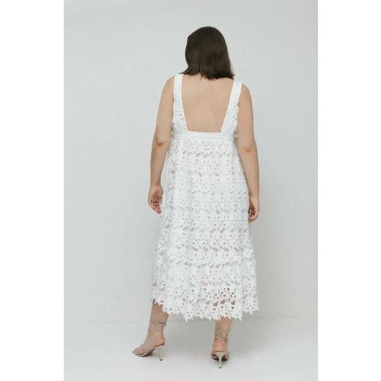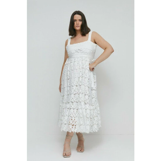 Part of the plus size collection. This feminine lace maxi dress features a square neckline, thick shoulder straps and a flowing lace skirt.