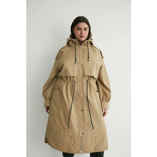 Main: 68% Cotton 32% Polyester. Lining: 80% Polyester 20% Cotton. Model wears a UK size 18. Length from CB: 110cm.