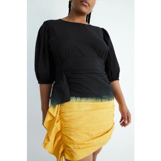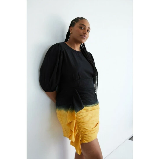 89% Cotton and 11% Linen – Machine Wash. Model wears UK 10. Length in UK size 10: 94cm