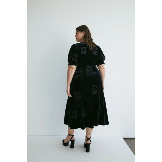 Warehouse Plus Size Embroidered Yoke Floral Midi Dress For Female