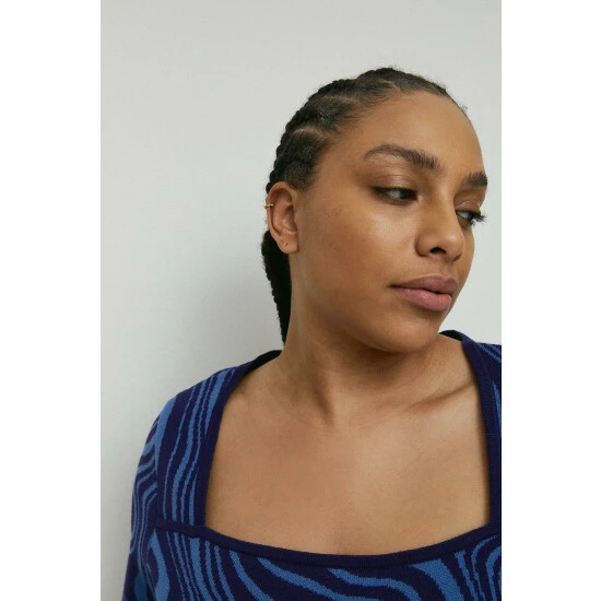 80% polyester 20% viscose. Machine Wash. Model wears UK size S. Side neck point in UK size S: 63cm