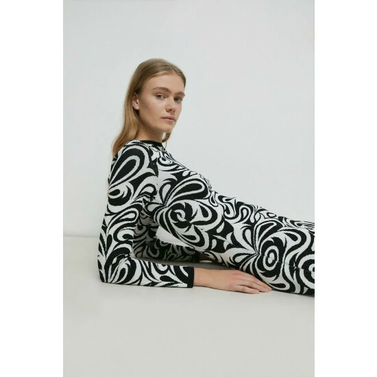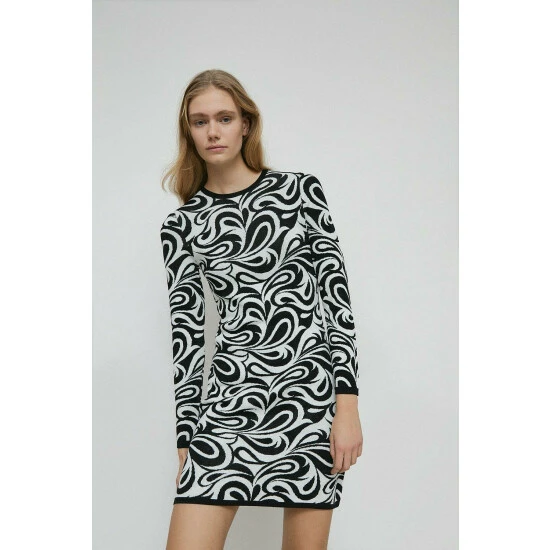 Style: Knitted DressDesign: JacquardFabric: KnittedLength: MiniNeckline: CrewSleeve Length: Long Sleeve