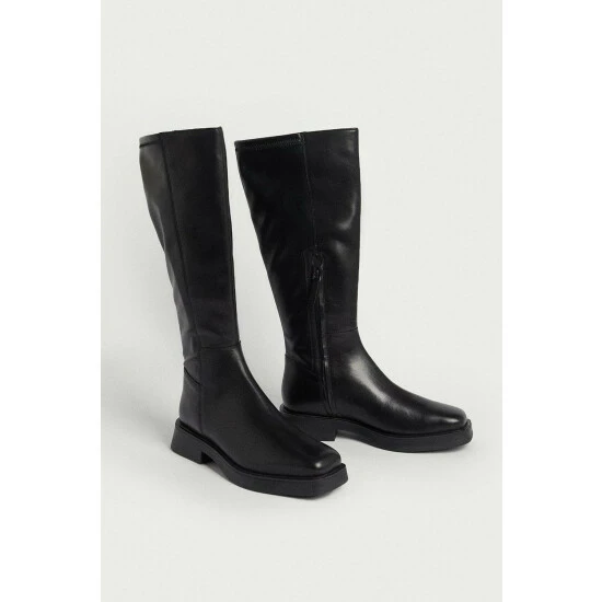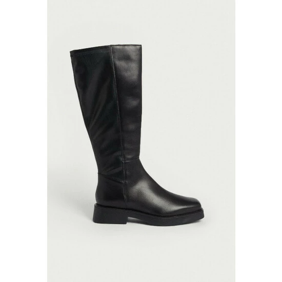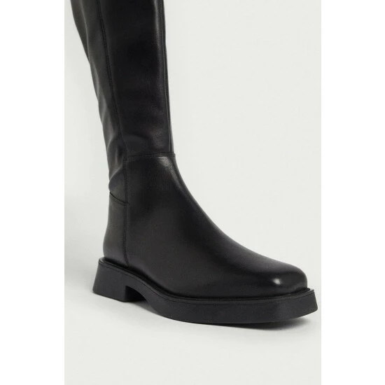 Style: Knee High BootsDesign: PlainFabric: Leather