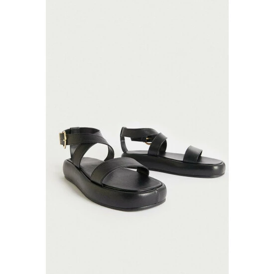 Real Leather Wrap Around Ankle Chunky Sandal