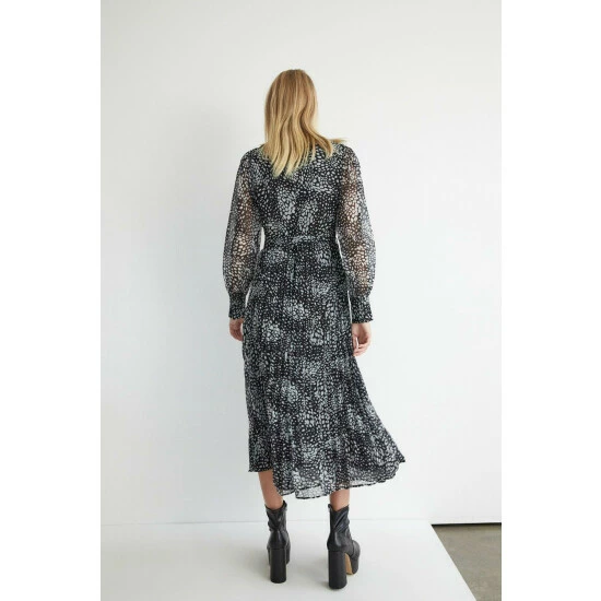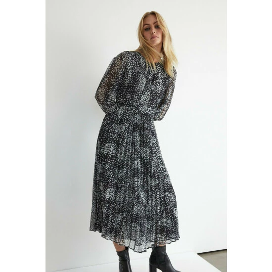 Warehouse Petite Abstract V Neck Pleated Maxi Dress For Female