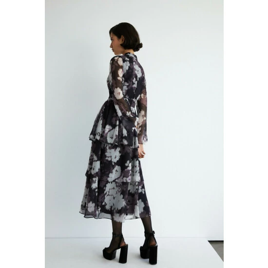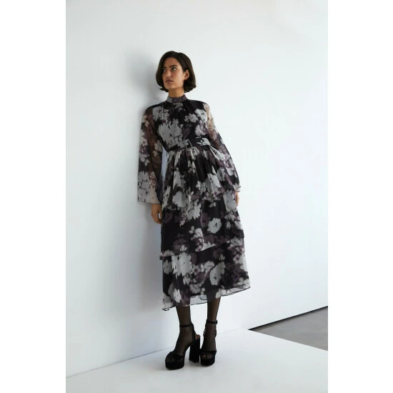 Warehouse Plus Size Embroidered Yoke Floral Midi Dress For Female