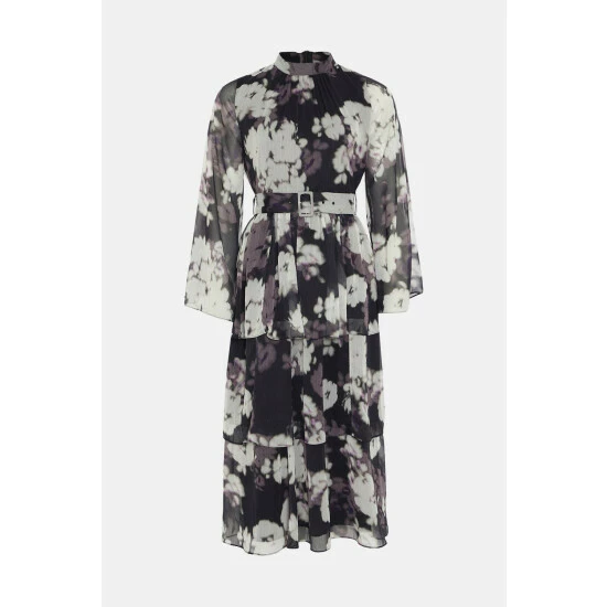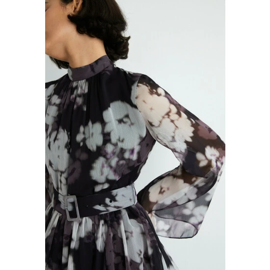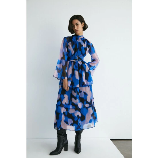 Warehouse Petite Abstract V Neck Pleated Maxi Dress For Female
