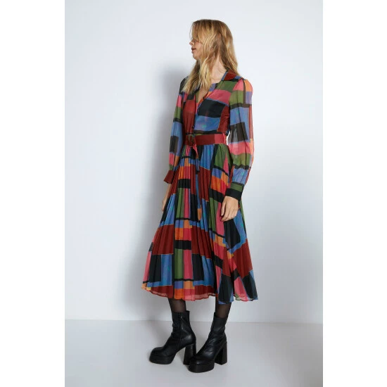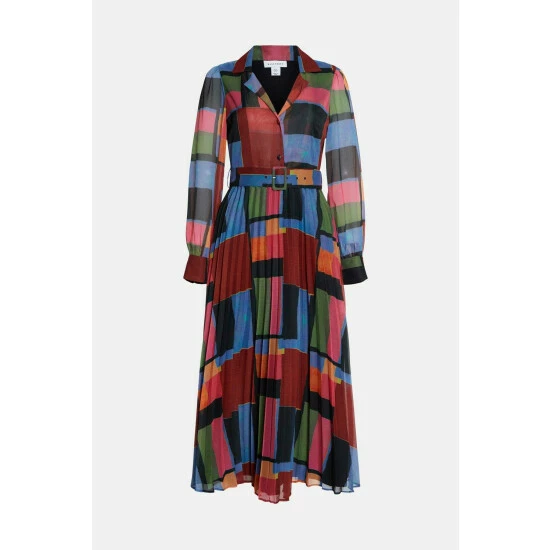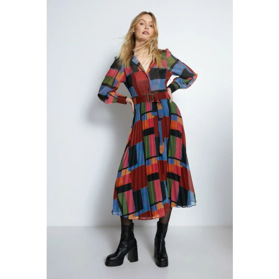 Warehouse Petite Abstract V Neck Pleated Maxi Dress For Female