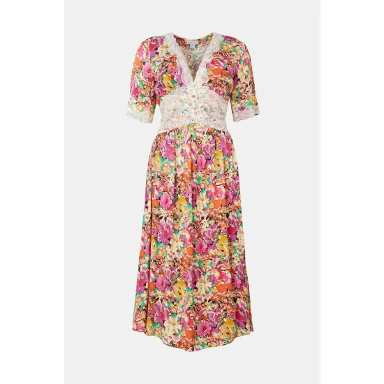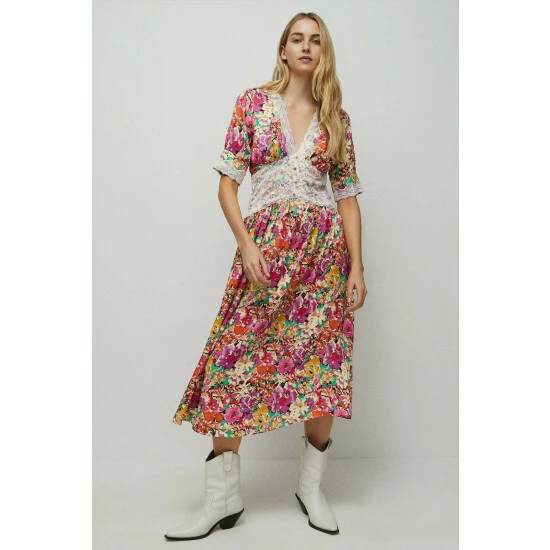 Warehouse Plus Size Embroidered Yoke Floral Midi Dress For Female
