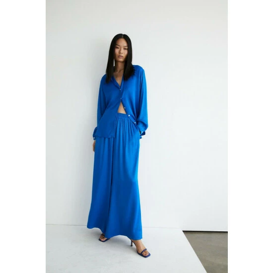 100% Viscose – Wash with similar colours. Model wears a UK size 10. Inside leg length: 74cm.