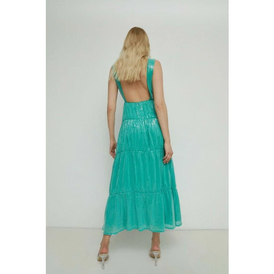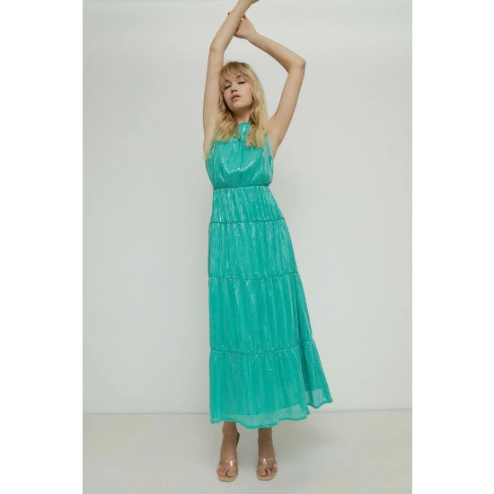 Warehouse Petite Abstract V Neck Pleated Maxi Dress For Female