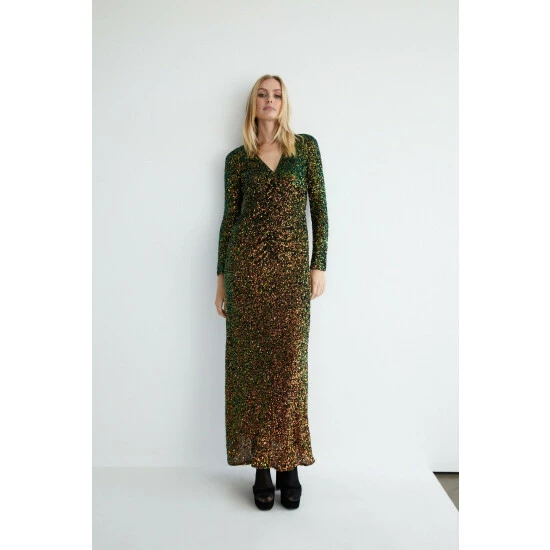 Main: 95% polyester, 5% elastane, Lining: 100% polyester, Wash at 30 degrees, Model wears S, Dress length: 130cm