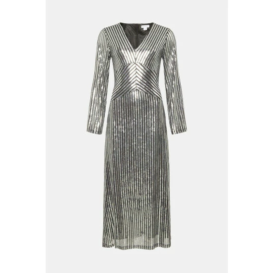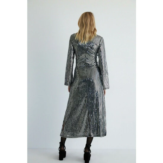 Main: 95% polyester, 5% elastane, Lining: 100% polyester. Dry clean only. Dress length 131 cm, Model wears S.