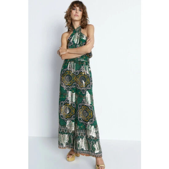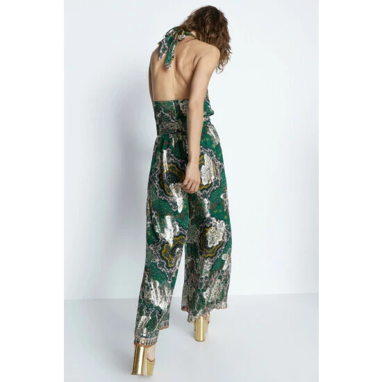 Main 73% Viscose and 27% Metallised Fibre. Lining 100% Polyester. Machine Wash. Model wears UK size 10. Inside leg length UK size 10: 78cm